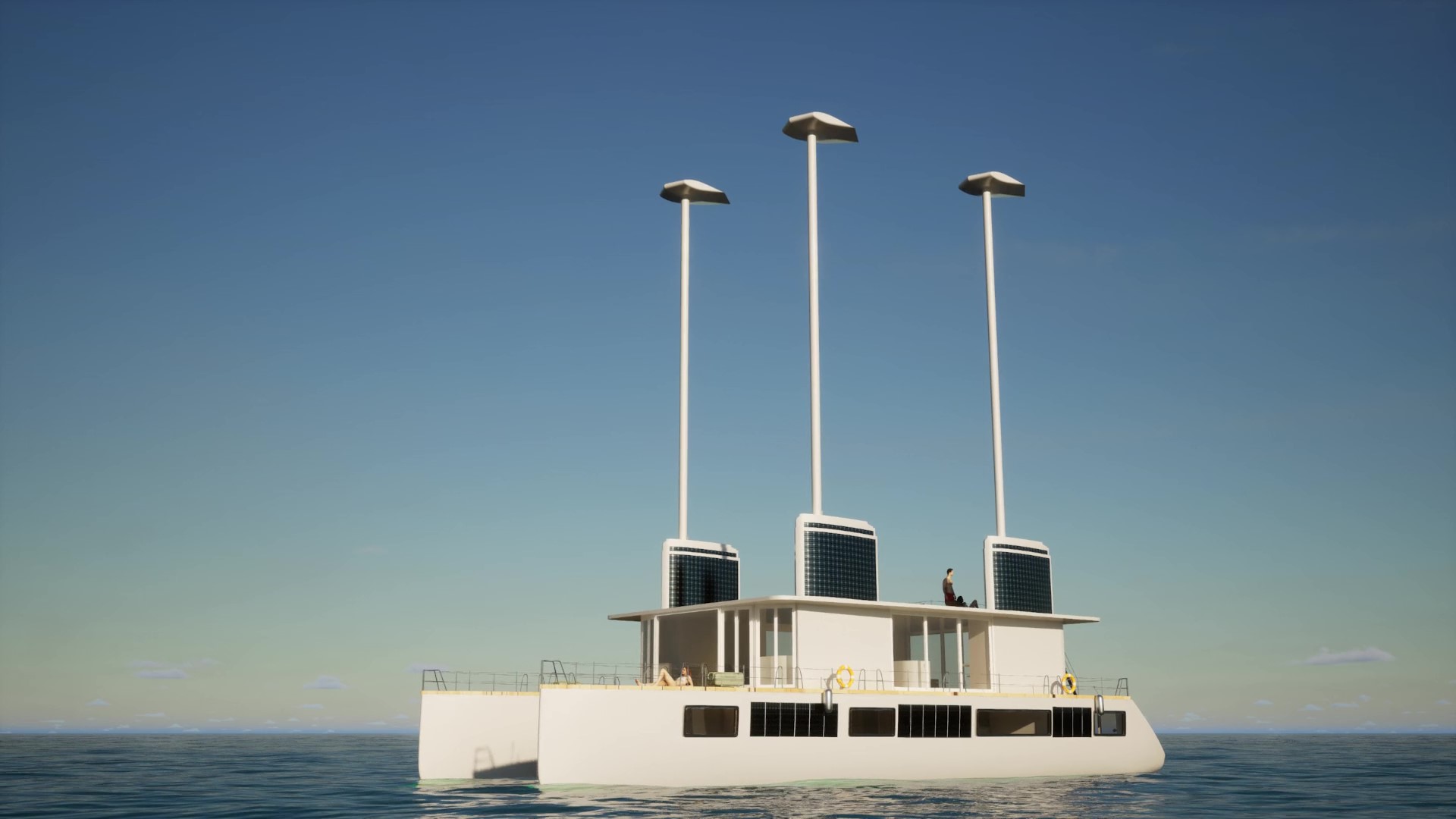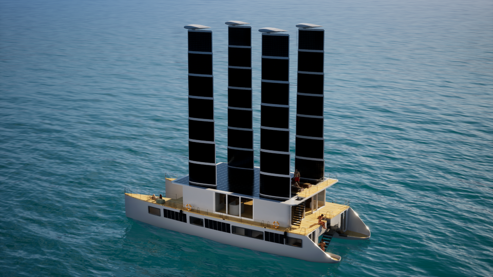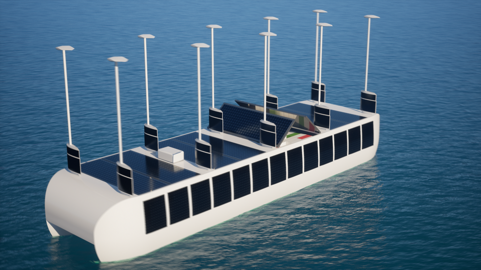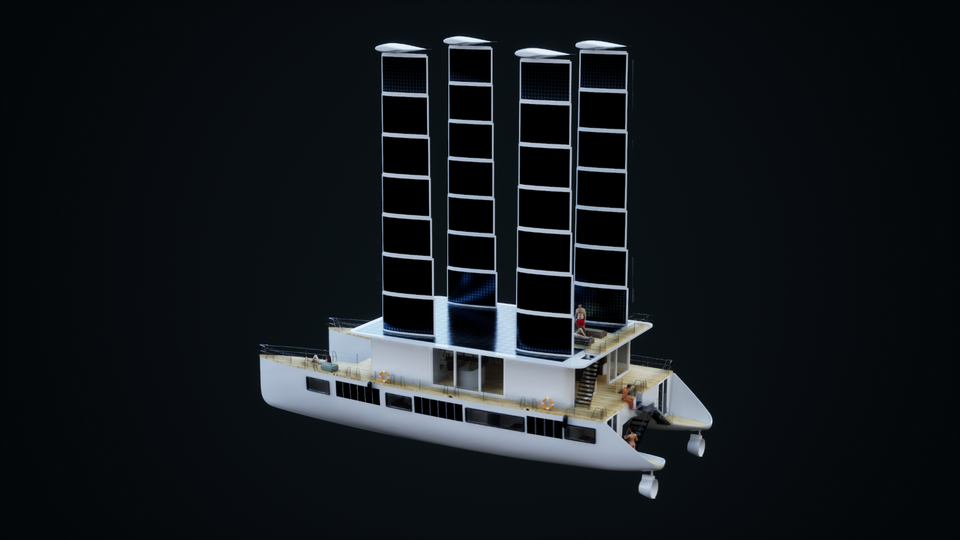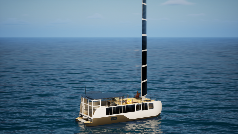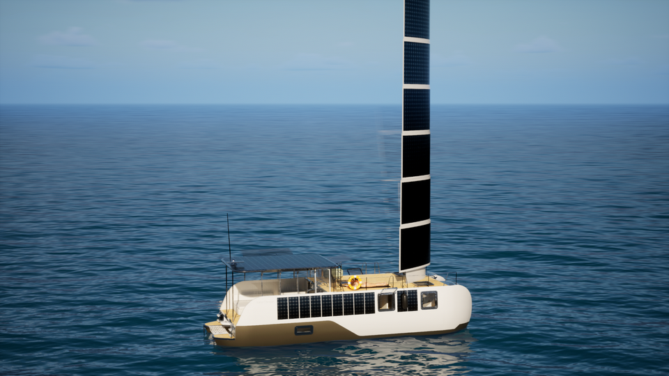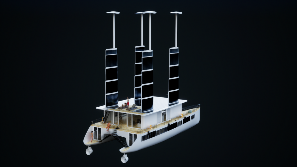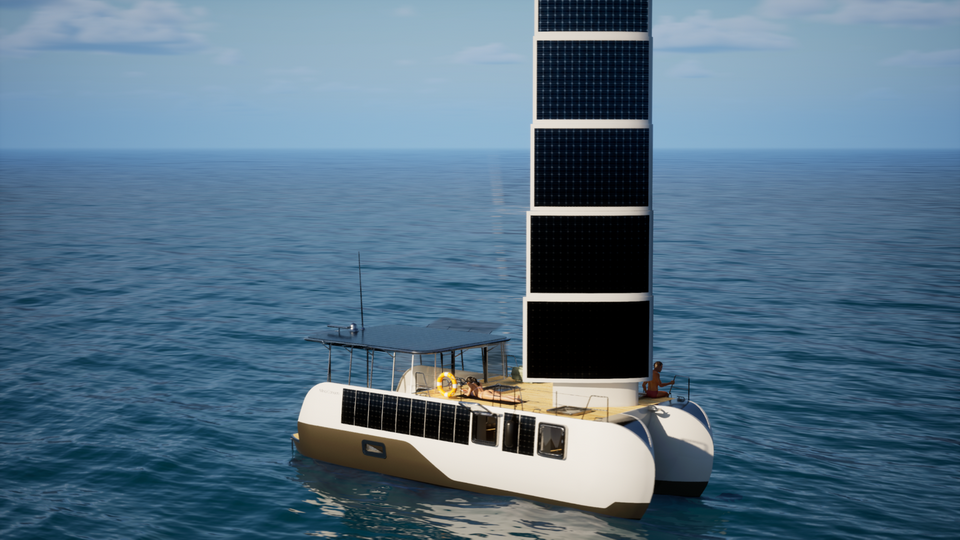 Mina is a wingsail hydrogen electric boat governed by a marine App Mina 11.6m and YasMina 24 green catamarans Mina 150 container vessel 1120 TEU vision Mina App navigate regulation, monitor hydrogen level, share the experience